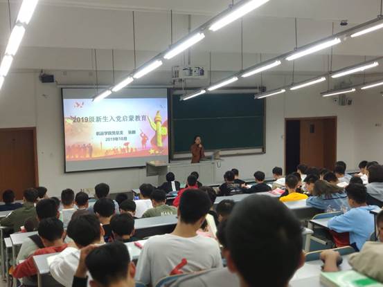 为切实做好2019级新生入党启蒙教育,积极引导新生自觉争做中国特色社会主义的坚定信仰者和忠实实践者,帮助新生端正入党动机。航运与船舶工程公司党总支组织2019级新生共计480余人,在双福校区开展入党启蒙教育主题讲座。讲座由公司党总支副书记蒋攀、员工第二党支部书记张颜主讲。