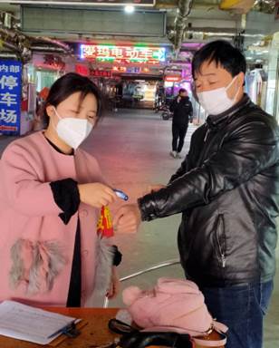 马会芳,山西太原,航海技术专业1803班员工。自2月22日以来,每隔周六周日闲暇时间,便会志愿在街道入口处对进入人员测量体温,并进行信息登记,维持入口秩序。