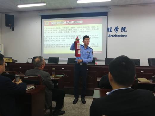 唐松教官对实验室危化品“五双”管理即:双人验收、双人保管、双人领取、双把锁、双本账等环节进行了细致讲解,并对实验室应急疏散常识、灭火器和防毒面具的使用方法等方面进行了全面培训。讲座集合近年来的事故案例,以视频和图片的方式进行了详细讲解分析。消防知识深入浅出,引用的案例发人深省,事故画面触目惊心,让每位教职工深刻感受到实验室危化品有可能带来的伤害,火灾事故的无情和掌握基本消防知识的重要性。