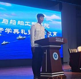 2020级本科生代表郭赢锘同学以“严谨求实、团结进取”的校风和“明德行远、交通天下”的校训激励大一新生,同时给予了真诚的祝贺与期待;2021级本科新生代表张旭东同学在发言中表达出了对老员工活的憧憬,以及面对大学学习的自信与勇气;2021级硕士研究生代表张春玉同学告诫新生要珍惜学习时光,要开阔视野、要培养格局与胸怀,并送上“乘风破浪,厚积薄发”的祝福。