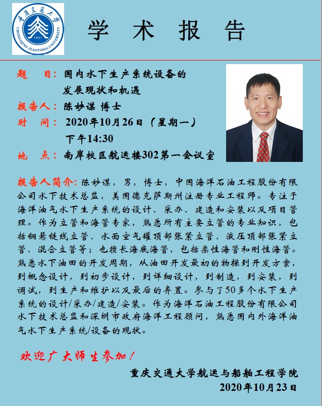 作者:彭中波 审核人:雷林 来源:学科办 时间:2020年10月23日 11:15 点击数:
