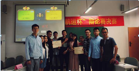 决赛由公司辅导员老师和辩论队负责人担任评委。由辅导员老师进行了严谨细致而又不失风趣的点评后,举行了颁奖仪式,然后大家一起进行了合影留恋。