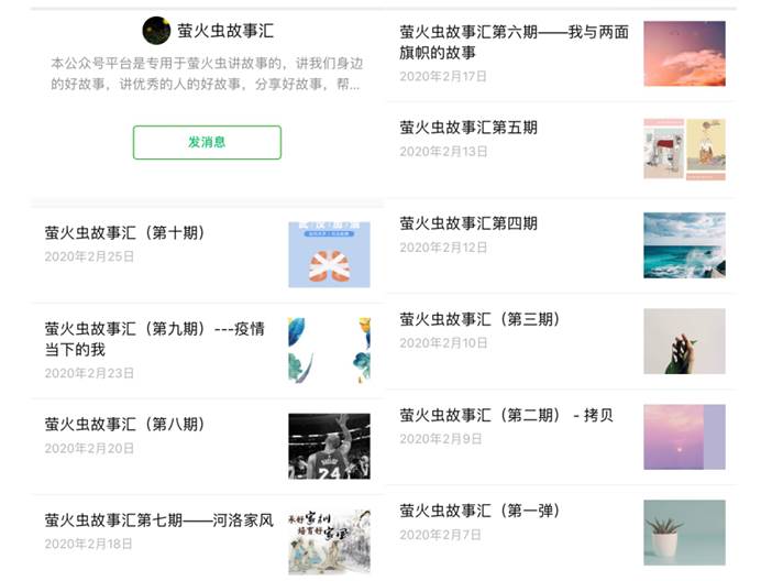 至今,“萤火虫故事汇”线上沙龙已成功举办十期,我们的故事还将继续。我们坚信,无数的萤火虫聚集在一起,会带来更多光亮和温暖。