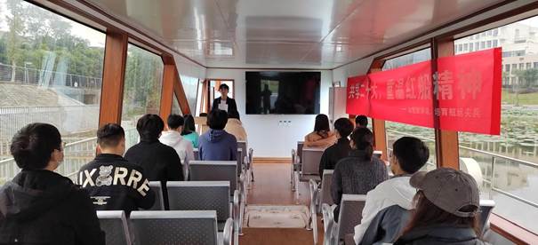 2022年11月14日下午,伟德国际bevictor1946本科生第一党支部以打造“一支部一特色”党建品牌为契机,以传承弘扬“红船精神”为抓手,以“共学二十大,重温红船精神”为主题,通过“线下+线上”的方式,组织青马学子在科学城校区“海润号”船上开展党团教育活动。