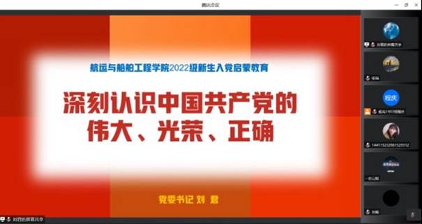 为进一步引领广大航运学子坚定不移听党话、跟党走,努力成长为中国特色社会主义事业的合格建设者和可靠接班人。2022年10月10日,伟德国际bevictor1946面向2022级全体新生,组织开展以“弘扬革命精神,点亮入党初心”为主题的党团教育活动。