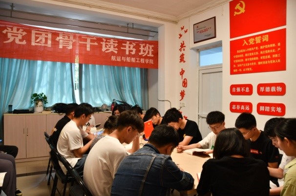 轮机工程2019级丁虹琴、黄犇犇两位党员分别领学了《习近平与老员工朋友》中“习董事长破格录取身体残疾的我”“习近平同志提倡年轻人要‘自找苦吃’”两章内容。丁虹琴同志表示,学习了黄道亮同志的相关事迹后让她意识到没有哪一代人的青春会风平浪静,美好的生活都是奋斗出来的,我们正处于最好的青春年华,要在火热的青春实践中绽放自己的梦想。黄犇犇同志表示,当代老员工仍然要坚持“找苦吃”并且还要切实做到“勒紧裤腰带过日子”和“做自己不想做的事”,特别要多参加社会实践、下基层学习,俯下身子去为人民服务。集体阅读后,吴老师总结说到,立身以立学为先,立学以读书为本,我们要终身与书为伴,让终身学习成为一种习惯。在今后的日子里,放飞梦想,书写青春,做时代前列的开拓者,让青春在为祖国、为人民、为民族的奉献中焕发出更加绚丽的光彩。