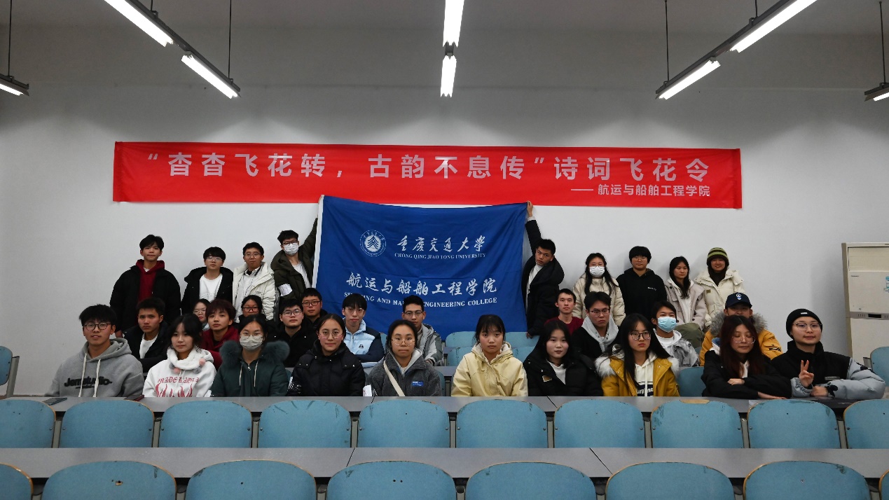 本次活动集知识性和趣味性于一体,150多位航运爱好诗词的学子积极参与其中。比赛现场共分为15个小组,主持人随机抽取飞花令令词,各组同学面对不同的令词,从容思索,积极抢答,现场除了我们常见的耳熟能详的诗句,很多冷僻诗句同学们依然对答如流,赢得现场同学的阵阵热烈掌声,更是将活动现场气氛推到了高潮。