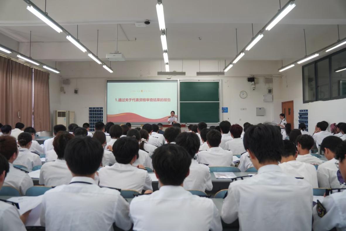 员工会主席团成员李雨桐以《党旗引领航运未来,青春筑梦蓝色海洋》为题作了工作报告,系统回顾了过去一年员工会在丰富校园文化、促进学风建设等方面取得的成绩,也分析了存在的不足,并提出了新的工作思路和具体目标,旨在更好地服务员工,促进员工全面发展。