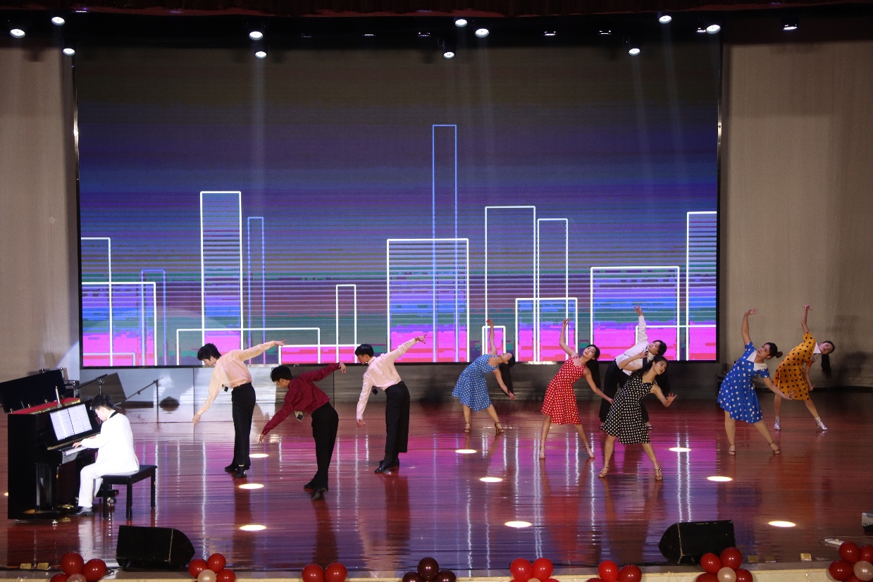 晚会开场前播放的暖场视频展示了公司学子朝气蓬勃的精神面貌。热情洋溢的《Drip》开场舞瞬间点燃全场激情。晚会共分为“回首”“星耀”“远航”三个篇章十三个节目,通过歌曲、配音、现代舞、古典舞、话剧、时装秀、器乐等多种艺术形式,全方位、多角度地展现了航运学子的风采。