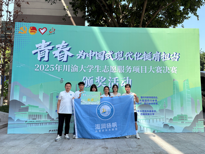 这份荣誉的背后,是团队数月来夜以继日的努力。自项目活动进行以来,“海润扬帆”团队成员便全身心投入筹备工作。他们反复打磨项目方案,深入中小学开展活动,根据受众需求优化科普内容;同时,团队还积极整合校内外资源,与重庆部分中小学、企业建立合作,为项目实施提供坚实保障。备赛期间,成员们更是开启“冲刺模式”,一轮轮修改材料、一次次模拟答辩,将专业知识与志愿精神深度融合,最终在决赛中绽放光彩。