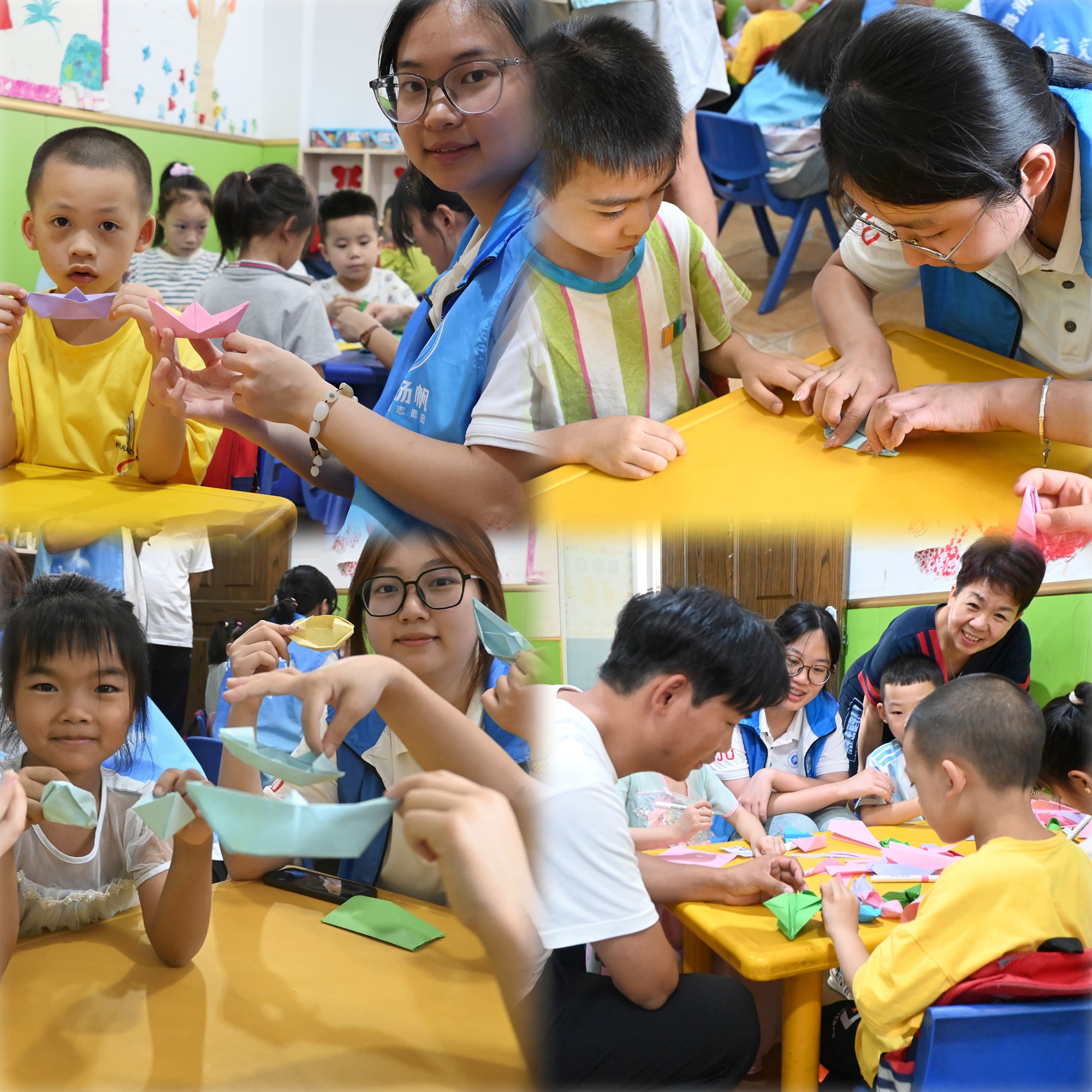 当天下午,在石船社区的金果果幼儿园,“海润扬帆”团队成员带领小朋友们动手折叠彩纸船,学习基础航海知识。孩子们在实践中了解了船舶的基本构造,并通过折纸船的方式模拟航行过程。这一过程不仅增强了孩子们的动手能力,也让他们在轻松愉快的氛围中感受到航海文化的魅力。不少小朋友表示,将来也想成为一名船长,驾驶大船探索海洋的奥秘。