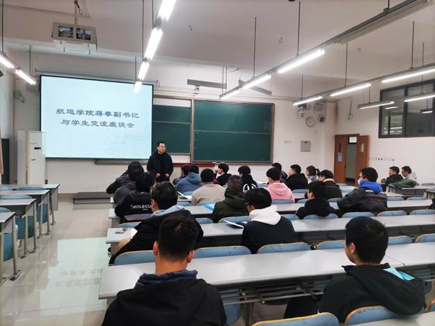 为提醒帮助受到学业警示员工重视学习,加强员工日常安全稳定等方面的规范管理,11月9日在科学城校区A01411教室,航运与船舶工程公司党总支副书记蒋攀主持召开了员工交流座谈会,辅导员漆振羽、古鹏鑫和员工会干部、半军管部员工干部、部分受到学业警示的同学们参会。