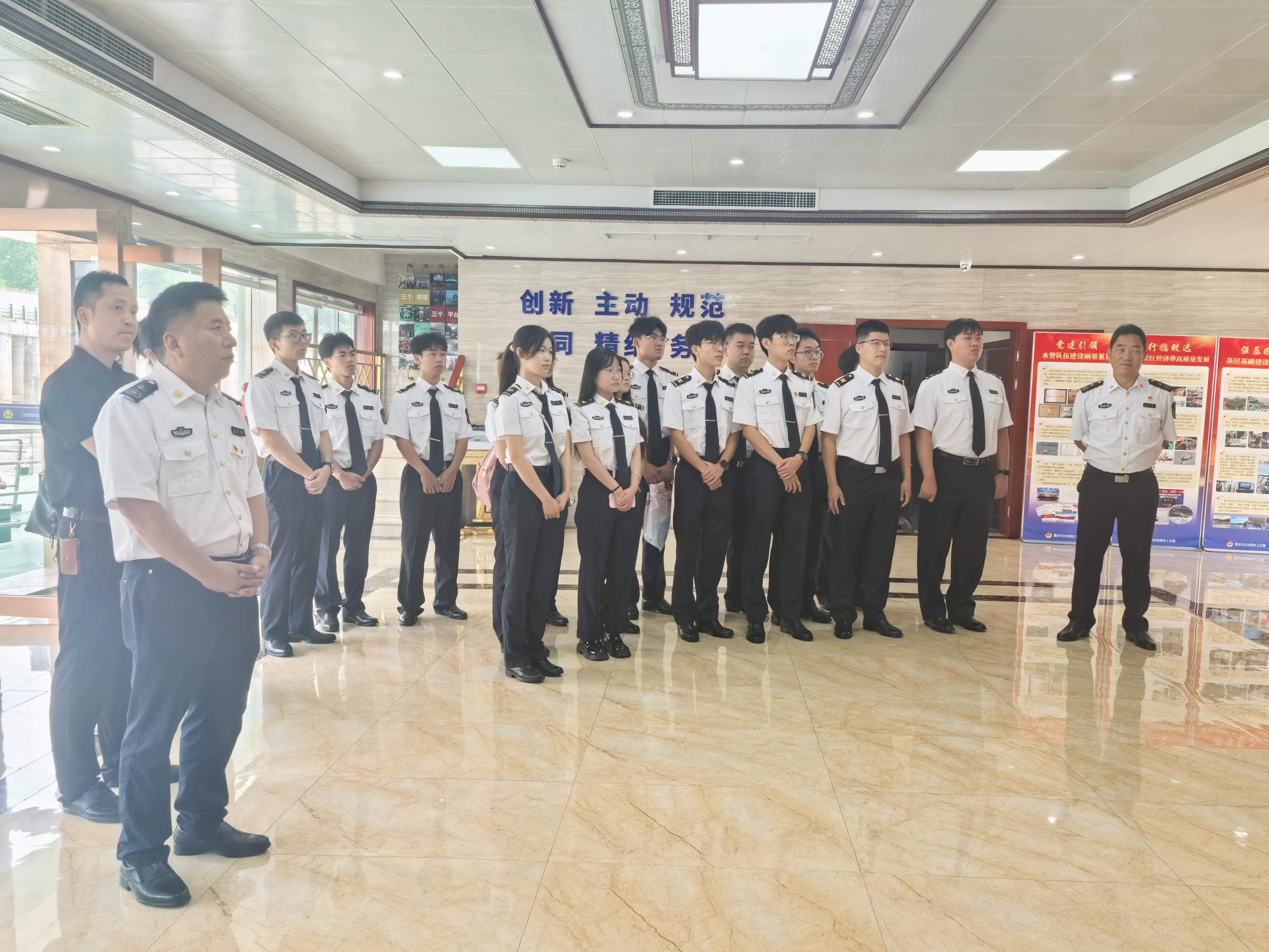 2025年7月8日,伟德国际bevictor19462024级“郑和班”同学在公司党委书记周德贵、经理盛进路的带领下,走进重庆市公安局水上分局开展第三学期实践教学活动。此次活动以警务装备实操、水上救援设备研学、警务案例深度研讨为载体,推动航海安全理论与警务实践深度耦合,既为“郑和班” 学子打造了沉浸式职业启蒙课堂,更为公司第三学期 “产教融合、实战育人” 的改革探索增添了生动实践注脚。
