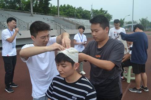 本次比赛内容分别为:消防水带、包扎、叠被子三个项目。本次比赛采取计时记分和完成度记分规则。每个小组分别由三个同学组成,以小组为单位完成比赛并且计入小组总成绩。在比赛开始之前,同学们都认真观看了教学视频和教学文案,通过学习后再进行比赛,效率高,事半功倍。