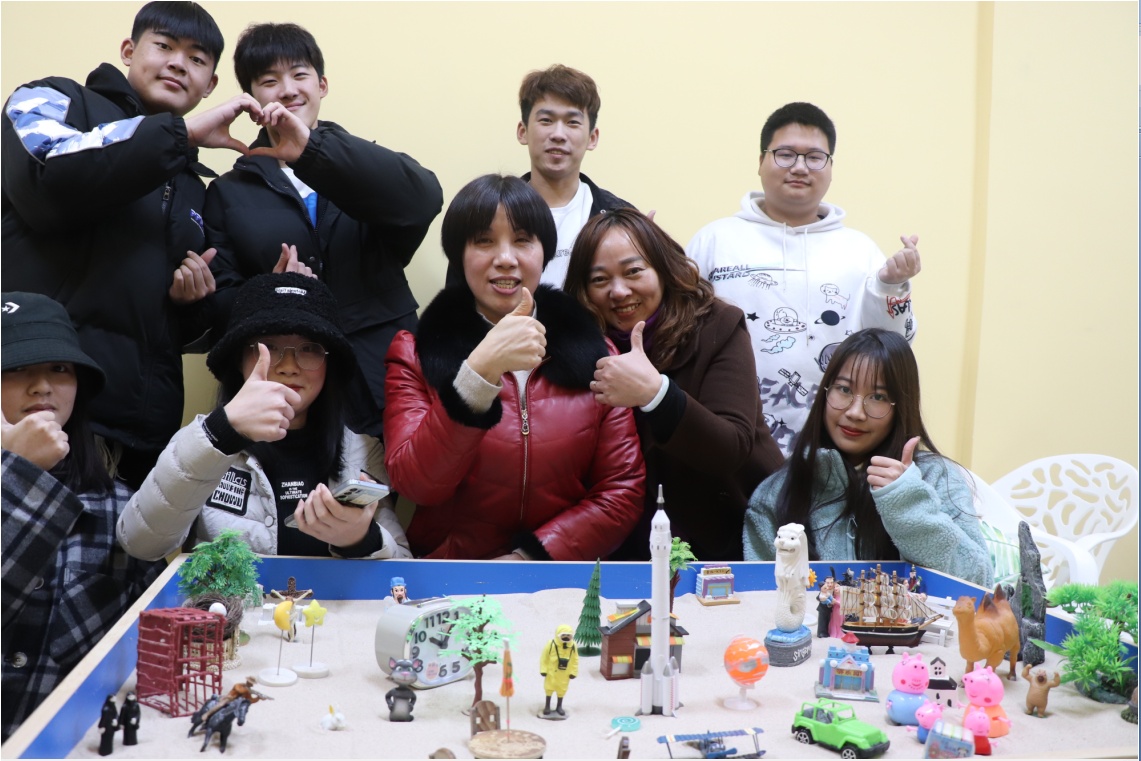 伟德国际bevictor1946坚持抓好员工安全教育管理,高度重视员工心理健康,11月24日晚,在科学城校区举行心理健康宣传月沙盘团体辅导活动。特邀请到江津区心理咨询学会志愿者专家邹荣珍教授、高级沙盘治疗师刁乾英老师、苏屿霞老师参与指导,公司心理辅导中心漆振羽老师、院团总支员工会部分干部、心理辅导中心员工干部、心理委员参加活动。