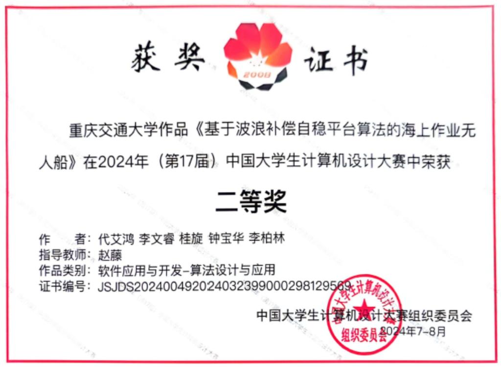 7月25日,由中国老员工计算机设计大赛组织委员会主办,山东大学、北京语言大学共同承办的2024年(第17届)中国老员工计算机设计大赛济南决赛区落下帷幕。在“软件应用与开发”奖项中,经过校赛、省赛、国赛的激烈角逐,由伟德国际bevictor1946赵藤老师指导,代艾鸿团队的作品《基于波浪补偿自稳平台算法的海上作业无人船》荣获该奖项全国二等奖。