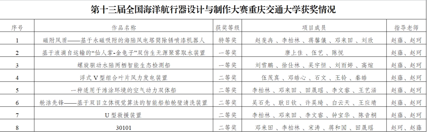 公司学子在“第十三届全国海洋航行器设计与制作大赛”中再创佳绩