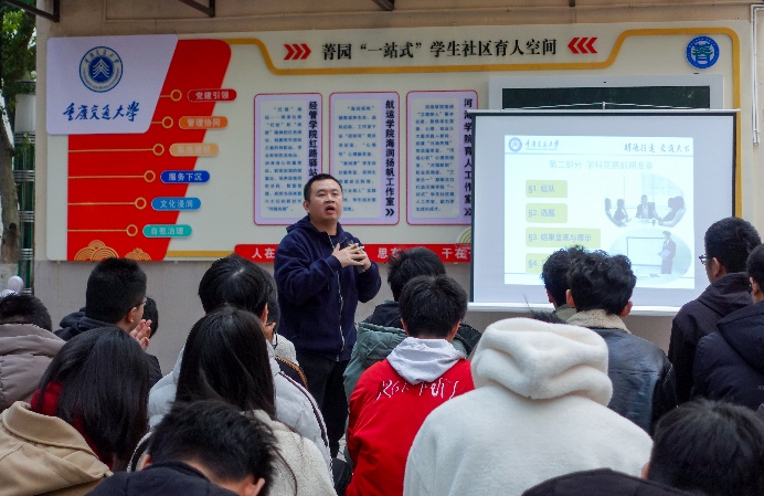 活动伊始,赵藤老师首先针对创新创业的核心内涵深入阐释,并通过生动且精炼的分享收获在场师生的热烈掌声,紧接着,赵藤老师围绕科创竞赛分类,组队模式等前期准备工作为同学展开讲解,并以比赛说明书为范例,深入剖析了当前科技创新领域的发展走向和前沿态势,对学科竞赛的参加提供可行性建议。