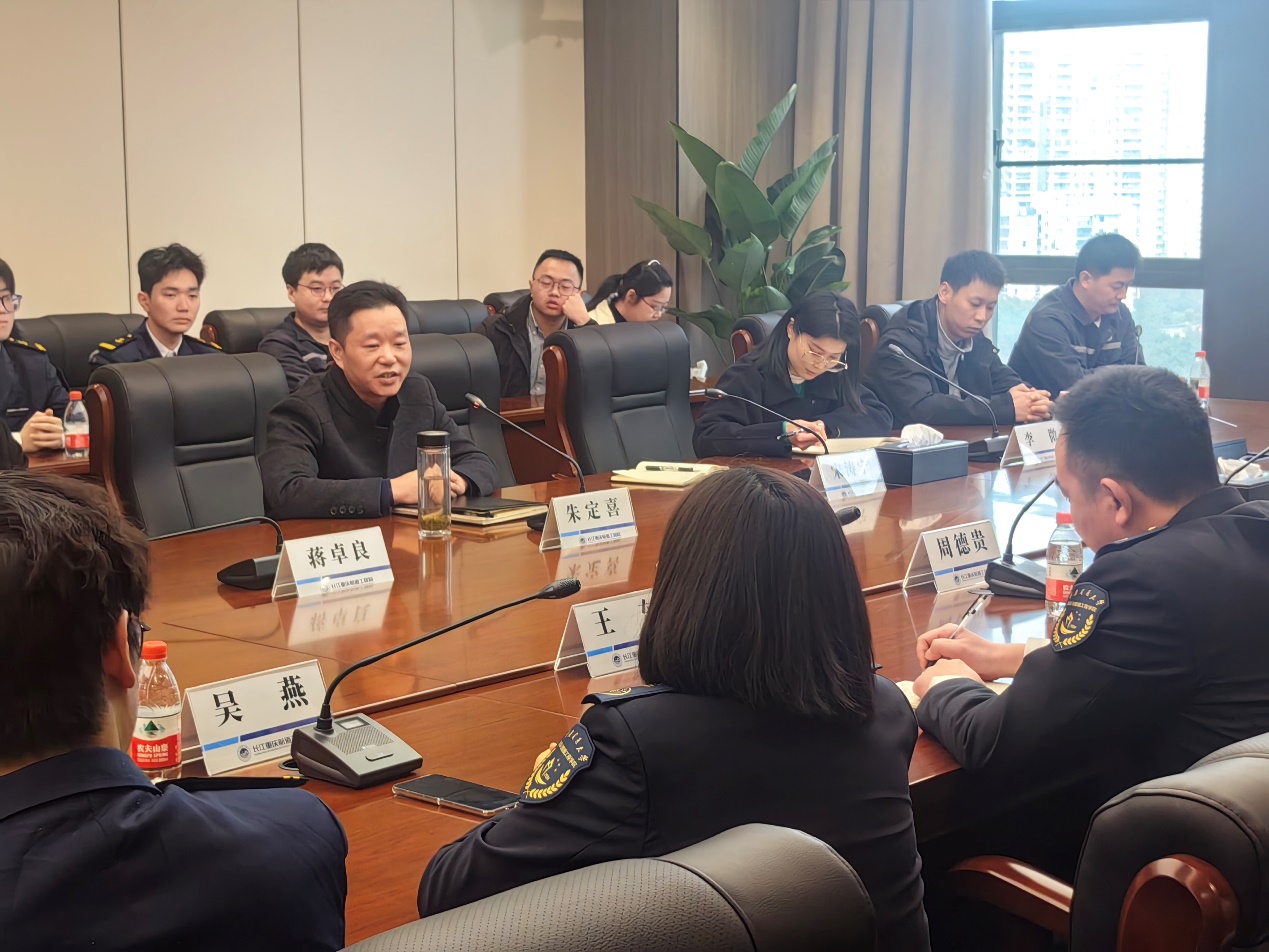 2025年3月12日,航运与船舶工程公司党委书记周德贵、党委副书记王东带领学工办主任邓昶、辅导员吴燕,以及15名本科生和研究生,前往长江重庆航道工程局开展访企拓岗活动。此次活动不仅是公司深化产教融合、拓宽员工就业渠道的重要举措,更是校企合作迈向新阶段的起点。