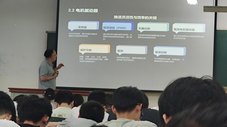 讲座中,文高工融入大量工程实践与前沿动态,分析技术挑战与突破路径,引导员工关联专业学习与职业规划。互动环节,员工就电机材料、驱动控制、检验标准及就业方向踊跃提问,文高工细致解答,其专业素养赢得师生掌声。