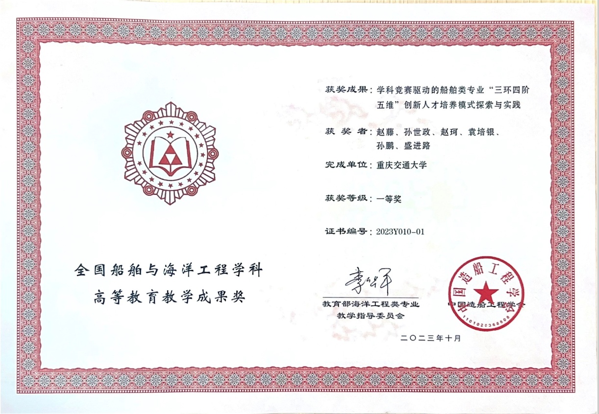 近日,教育部海洋工程类专业教学指导委员会和中国造船工程学会联合公布了2023年度全国船舶与海洋工程学科高等公司产品成果奖评审结果。伟德国际bevictor1946老员工创新实践中心主任赵藤老师领衔申报的“学科竞赛驱动的船舶类专业‘三环四阶五维’创新人才培养模式探索与实践”(完成人:赵藤、孙世政、赵珂、袁培银、孙鹏、盛进路)喜获教学成果一等奖,实现近年来公司该奖项历史性突破。
