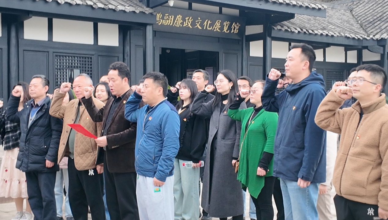 在廉政广场,全体党员整齐列队,面对鲜艳的党旗,庄重地重温了入党誓词。