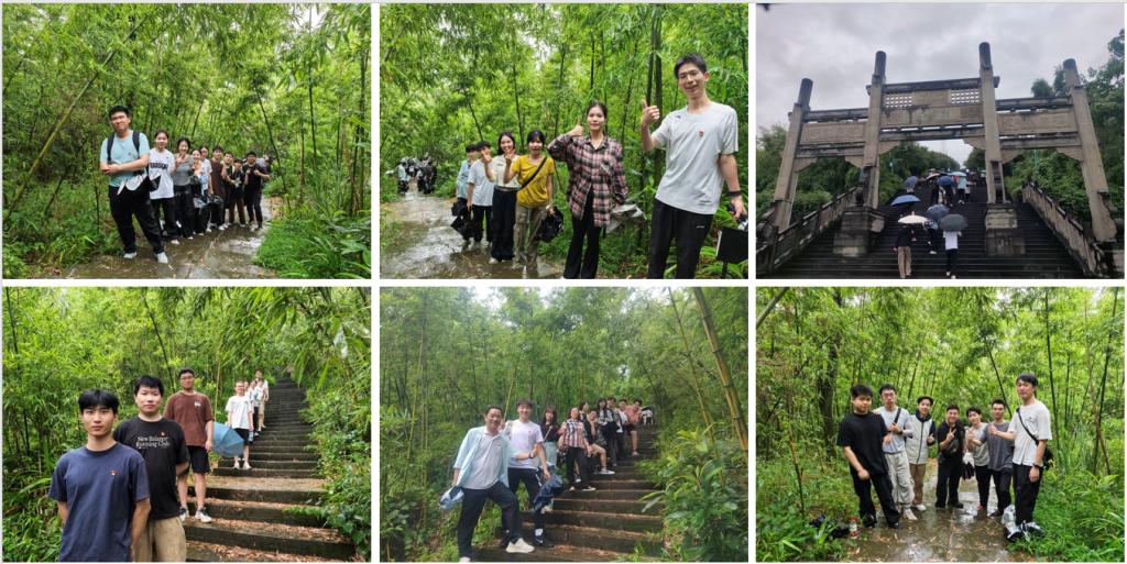 告别陶行知先生纪念馆后,全体人员前往北碚区缙云山健身梯道,开展“登清廉高峰”主题登山活动。山高、路滑、景美,抬头望去,719级健身梯仿佛高耸云端。在绵绵细雨中,大家先是拾阶而上,沿着蜿蜒的山路勇敢攀登。老师们一路上与员工交流着心得,鼓励大家在面对未来挑战时保持坚定的廉洁操守,不忘初心、砥砺前行,不时洒满欢声笑语。攀登缙云山不仅是一次体力的挑战,更是一次磨砺意志、坚定信念的过程,每一步都见证着师生党员的坚韧与勇气,路途中大家相互鼓励、相互扶持,展现出团结协作的精神风貌,也寓意着毕业生党员们未来无论遇到何种困难,都能坚守廉洁本色和初心使命勇往直前。