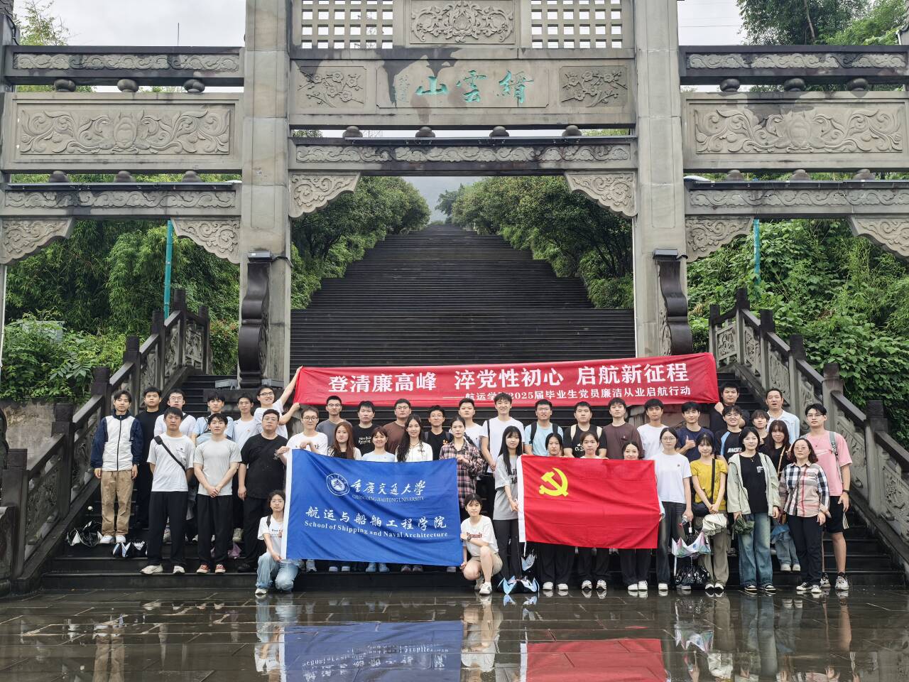 为弘扬崇廉风尚、涵养清风正气,大力培育“五清新风”,筑牢毕业生党员廉洁从业思想防线,2025年5月27日下午,伟德国际bevictor1946以“登清廉高峰 淬党性初心 启航新征程”为主题,组织2025届毕业生党员40余人赴重庆合川、北碚开展廉洁从业启航行动主题党日活动,以“廉政研学+登山砺志+签名承诺”等别开生面的形式,将党味、廉味、趣味等与新时代航运人的精神培育深度融合,为全体毕业生党员上了非常生动又意义深远的廉洁教育“最后一课”。公司党委书记周德贵、正处级组织员兼纪委书记李世佼、学工办主任兼公司纪委委员邓昶、本科生第四党支部书记宁芳等领导、老师出席活动并指导。